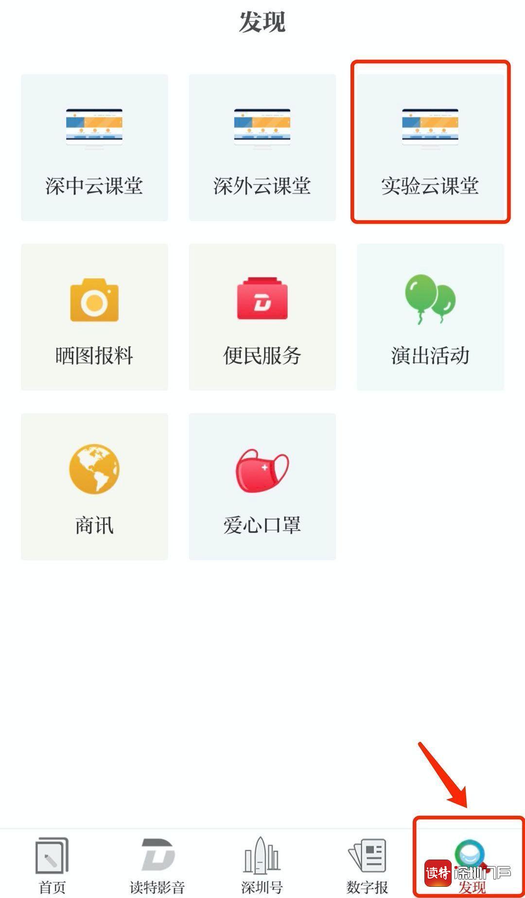 “發(fā)現(xiàn)”頻道也可直接找到“實驗云課堂”