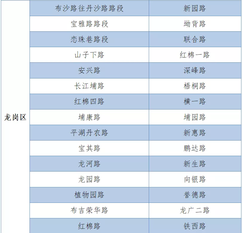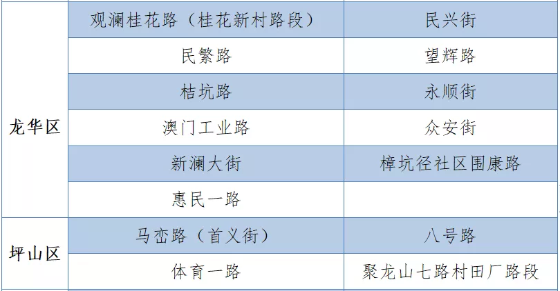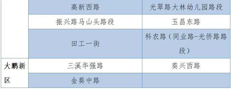 具體設置路段請看表格