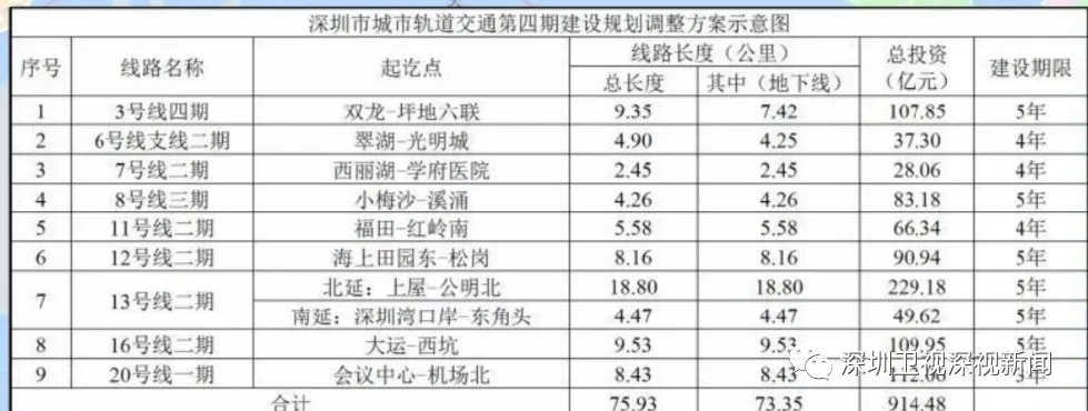 16號(hào)線二期工程自大運(yùn)站至西坑站,線路長(zhǎng)度9.53公里,為地下線,采用A型車(chē)6輛編組;總投資109.95億元,建設(shè)工期5年。