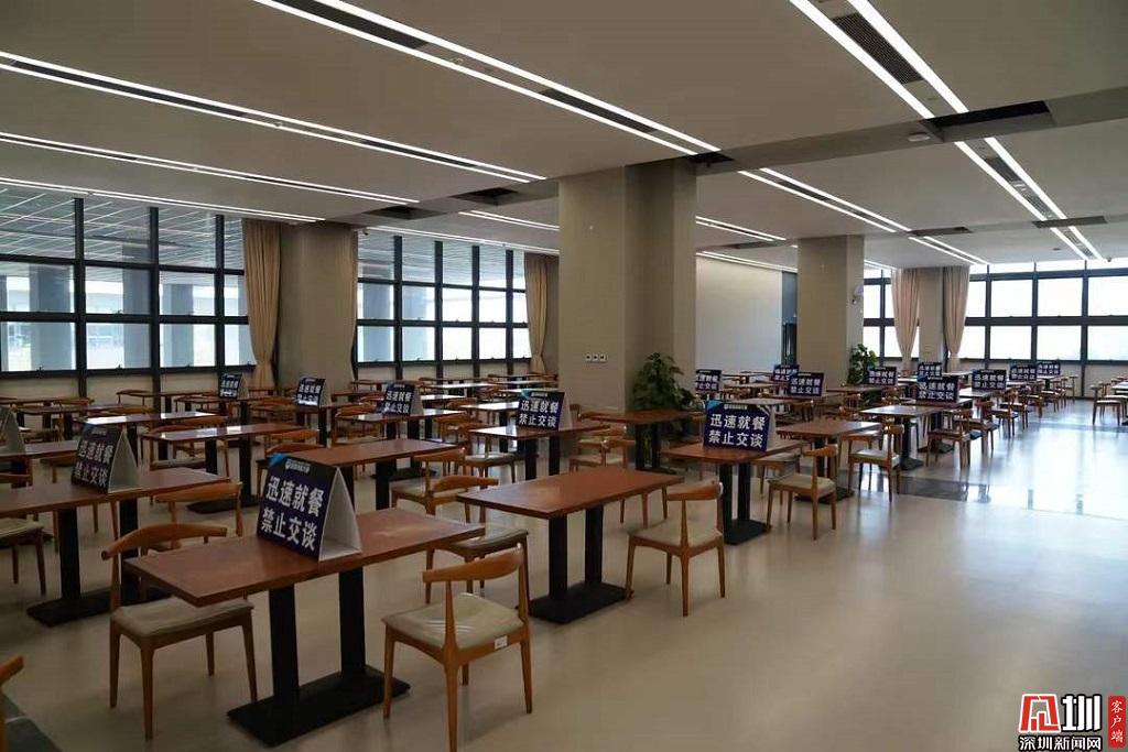 食堂就餐方面,深技大采取定點分時錯峰供餐制,引導師生排隊候餐時保持1米以上距離。計劃配置幾款固定套餐在窗口供應,并設置盒飯售賣區(qū),師生可即取即走,以多種方式減少排隊選餐時間及用餐區(qū)人員聚集。食堂就餐區(qū)現已設置間隔標識,保證就餐距離,并配置了洗手液和消毒酒精等物品。開學后,學生食堂實行單向出入,嚴格劃分出入路線,由北側門進入、送餐具回收后從南側門離開,減少人員往返交叉。