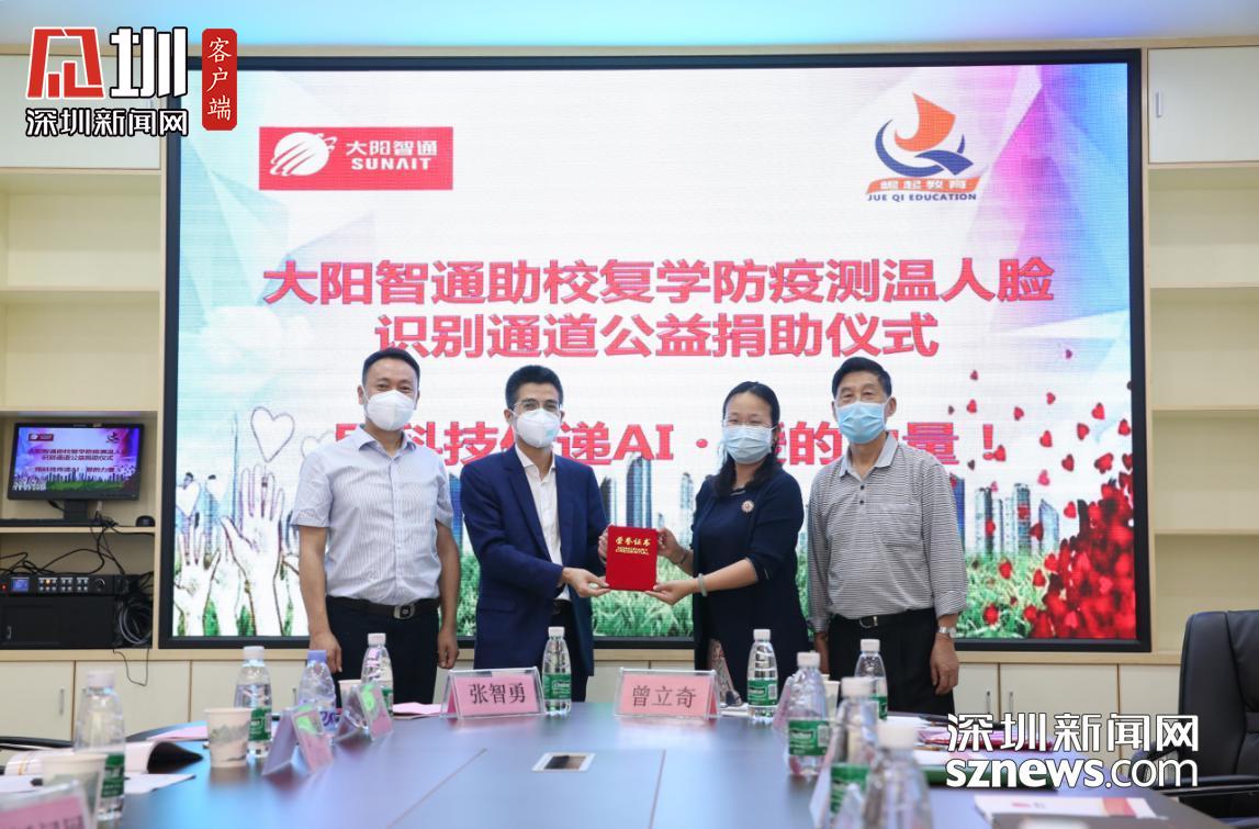 見圳客戶端·深圳新聞網(wǎng)2020年4月17日訊 (記者 潘寶儀 陳彬)4月16日下午,深圳市環(huán)陽通智能實業(yè)有限公司(以下簡稱“大陽智通集團” )向崛起教育集團的深圳市寶安區(qū)崛起誠信實驗學(xué)校和深圳市寶安區(qū)崛起第一幼兒園捐贈多套防疫測溫人臉識別通道,并舉辦公益捐助活動,助力學(xué)校全面復(fù)學(xué)。