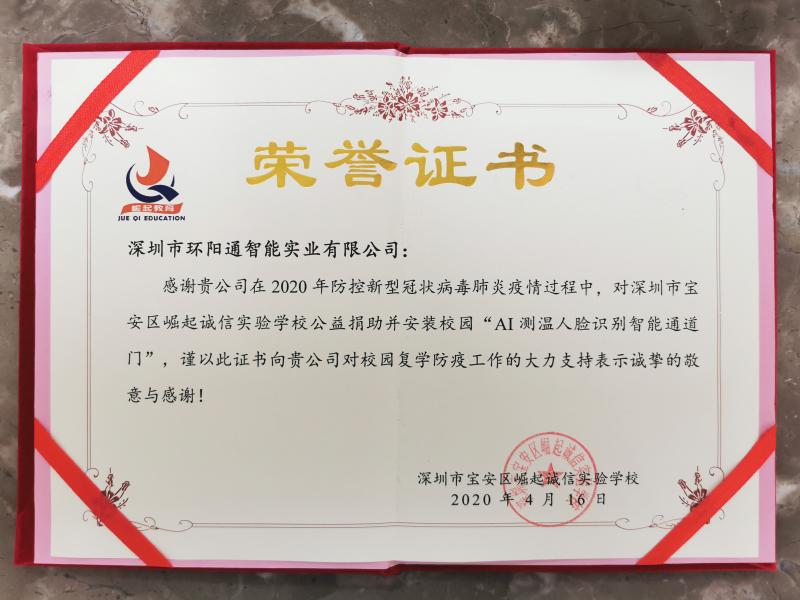 據(jù)介紹,在即將開學(xué)之際,大陽智通集團得知學(xué)校人員高度密集、人數(shù)眾多難以管控、而測溫防疫設(shè)備又緊缺的情況,決定優(yōu)先助校復(fù)學(xué)進行公益捐助。大陽智通集團營銷中心總經(jīng)理董永旺表示,此次公益捐助并部署在誠信實驗學(xué)校和崛起第一幼兒園的兩套智能通道產(chǎn)品區(qū)別于市面上大多數(shù)支架或箱柜式單一測溫儀,不僅可實時紅外測溫,還能實現(xiàn)防疫報警、人證合一快速安全通行、人臉識別數(shù)據(jù)管理等三大功能,通過點陣紅外測溫+雙目活體人臉識別雙向核驗方式,有效阻隔新冠疫情癥狀人群,有力緩解該學(xué)生和教職員工的防疫防控壓力。