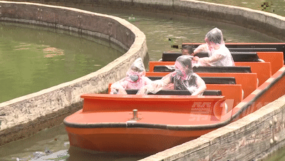 在主要景點大俠谷園區(qū),記者發(fā)現(xiàn),所有游客都戴著口罩,游園秩序良好。園內(nèi)的大型游樂項目,目前僅開放了水上激流和纜車等兩個室外項目,工作人員除了定時清潔消殺,每次活動也限定參與人數(shù)。