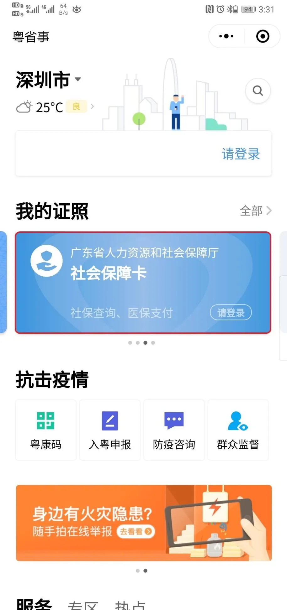 1、通過(guò)“粵省事”微信小程序查詢(xún),微信搜索“粵省事”小程序,登錄后,在“我的證照”添加“社會(huì)保障卡”;