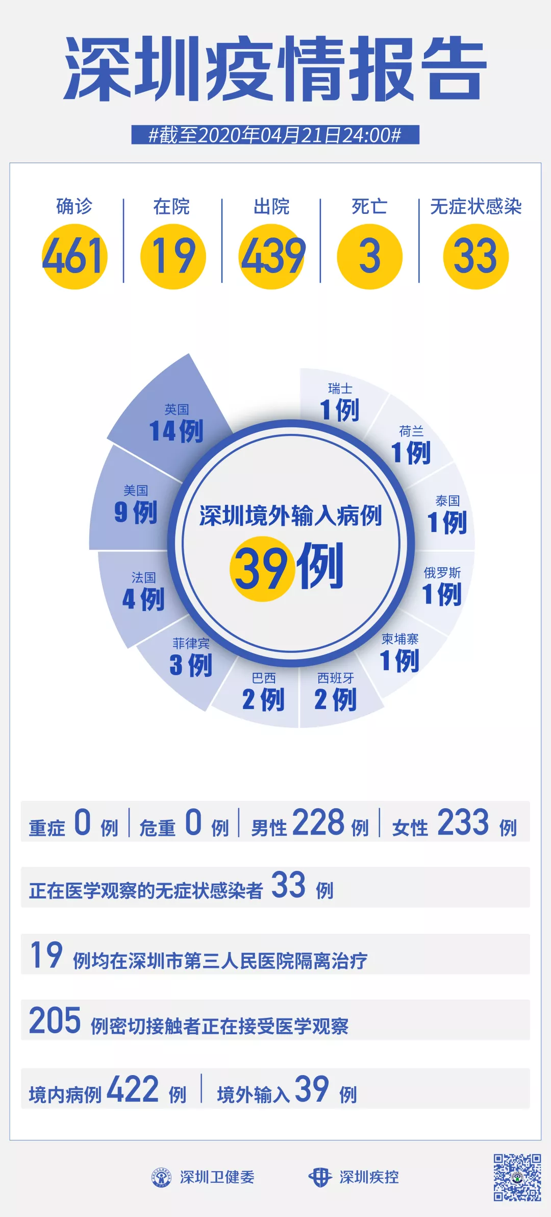 ??截至4月21日24時,深圳累計報告新冠肺炎病例461例。4月21日當(dāng)天新增出院6例。