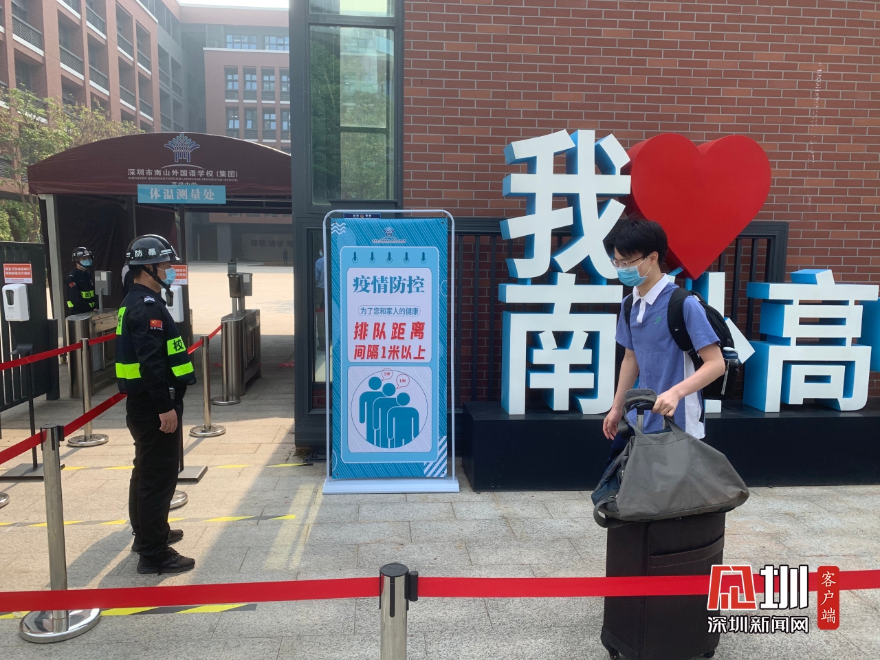 南山外國語高中則采取了減少學生宿舍人均密度的方式作為防疫“硬核”舉措?!澳壳八羞M入學校教職工、學生都進行了核酸檢測。在住宿方面,學校將每個宿舍6人居住改為4人居住,并保持時刻通風。每個班級30人左右,保證單人單桌?!蹦仙酵鈬Z學校(集團)高級中學校長馮大學告訴記者,每個進校學生首先要進行行李箱的消毒,隨后查驗健康碼,最后進行手部消毒和面部測溫,完成整個流程大概需要1分鐘時間。