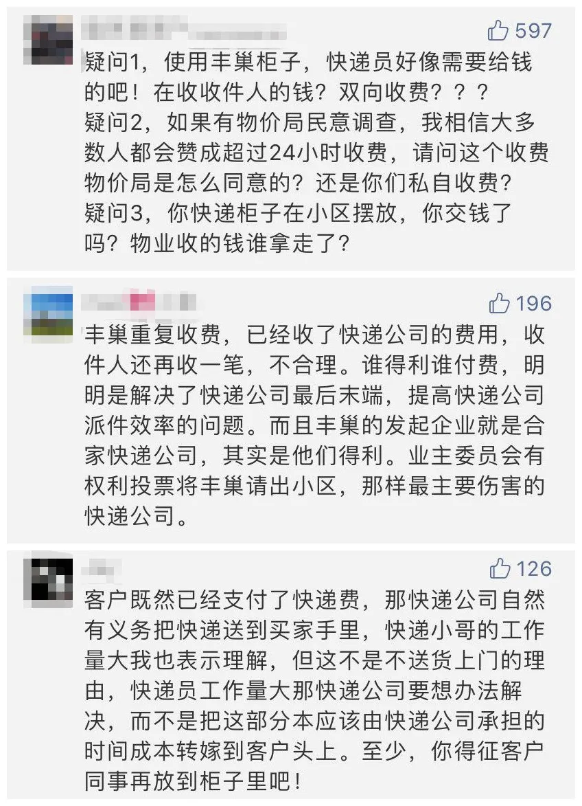 深廣電第一現(xiàn)場2020年5月1日訊 豐巢快遞柜“超時存放要收費”的消息可謂“一石激起千層浪”,在我們的報道發(fā)出后,許多熱心市民紛紛在后臺留言,大家都很疑惑:這個錢,真的得我們埋單嗎?快遞員、消費者兩頭都收費,合理嗎?物業(yè)收取的快遞柜租金,又去哪了?