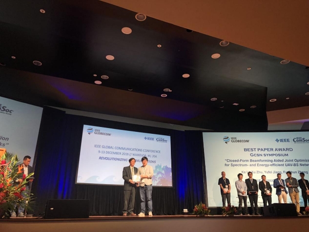 日前,由哈工大(深圳)電子與信息工程學(xué)院2017級(jí)碩士研究生李可擔(dān)任第一作者,朱旭教授、蔣宇飛助理教授、鄭福春教授為共同作者,哈工大(深圳)為第一通訊單位完成的論文《三維波束成形輔助的高譜效和能效的無人機(jī)基站網(wǎng)絡(luò)的聯(lián)合優(yōu)化》(“Closed-Form Beamforming Aided Joint Optimization for Spectrum- and Energy-Efficient UAV-BS Networks”)入選通信領(lǐng)域頂級(jí)會(huì)議Globecom2019 (IEEE Global Communications Conference2019),并獲得最佳論文獎(jiǎng)。