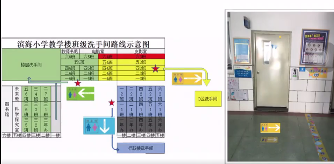 學校在每個樓層,都有彩色的貼條,“不串班不串層,請在屬于自己的色彩區(qū)域內活動哦!”