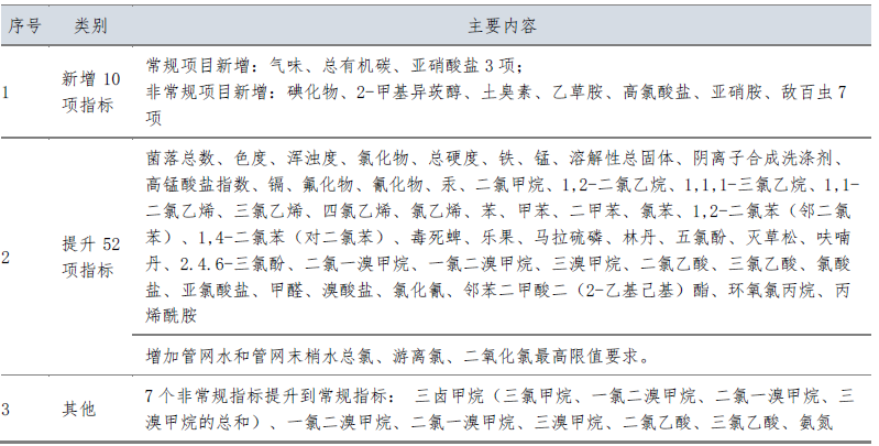 深圳市《生活飲用水水質(zhì)標準》與上海標準相比,增加了5項指標,提升了23項指標(含消毒劑);附錄增加了18項指標,考核方法上提升了出廠水和管網(wǎng)水合格率要求,增加了嗅味物質(zhì)檢測,重點關注龍頭水水質(zhì)。