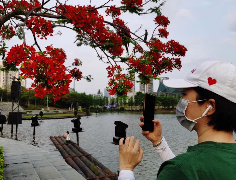 鳳凰木又名火樹、紅花楹,由于其開花時(shí)"葉如飛凰之羽,花若丹鳳之冠",因而得名「鳳凰樹」。每年5月至7月,是鳳凰樹開花的時(shí)節(jié)。在鵬城公園、道路兩旁到處可見鳳凰花盛開,當(dāng)下鳳凰花開正燦爛,錦簇花團(tuán)紅似火,成為鵬城亮麗的風(fēng)景線。圖為龍崗大運(yùn)中心鳳凰樹花開吸引市觀賞拍照。