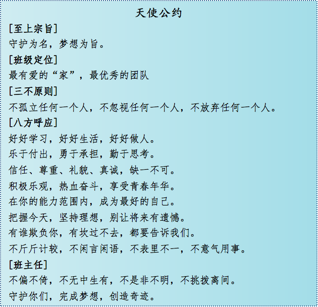 詹老師所帶班級嚴(yán)格遵守著“公約精神”,創(chuàng)造了一個(gè)個(gè)驚喜:2015級14班在藝術(shù)季班級文化設(shè)計(jì)中是全校唯一全員參與的班級;2016級8班在跳繩比賽中從練習(xí)時(shí)的倒數(shù)第一到復(fù)賽逆襲闖進(jìn)決賽獲得一等獎(jiǎng);2017級9班在疫情網(wǎng)課期間堅(jiān)持每科作業(yè)“今日事今日畢”,無一人掉隊(duì)。