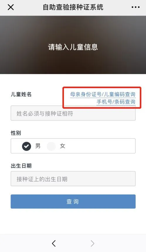 錄入兒童基本信息,可選擇手機號或條碼查詢: