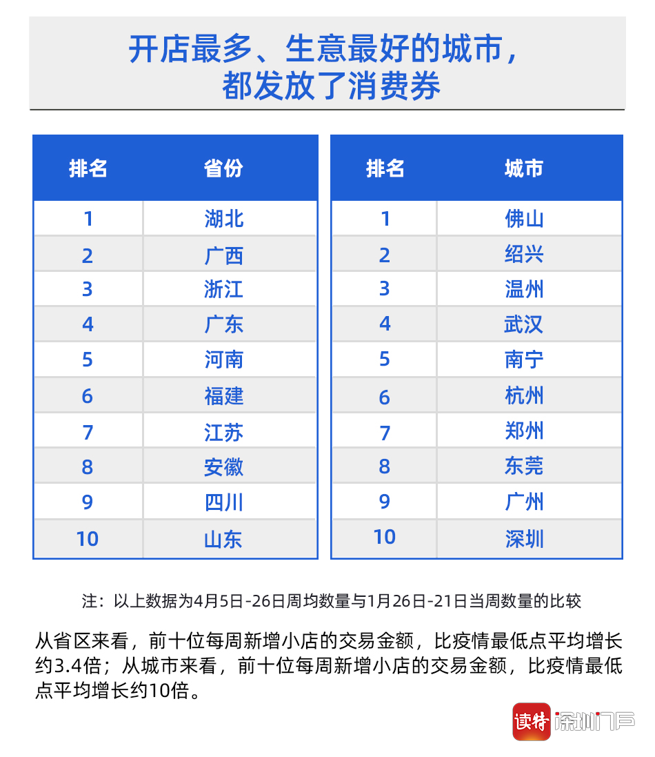 值得注意的是,排名前十的省份及城市,絕大多數(shù)都通過(guò)支付寶發(fā)放了消費(fèi)券。4月份以來(lái),佛山、珠海、東莞、清遠(yuǎn)、深圳羅湖和龍崗區(qū)陸續(xù)通過(guò)支付寶等平臺(tái)發(fā)放消費(fèi)券,廣東發(fā)放消費(fèi)券總額已經(jīng)超過(guò)10億元,成為全國(guó)發(fā)放消費(fèi)券最多的省份之一。尤其是上述排名第一的佛山,在市區(qū)兩級(jí)消費(fèi)券刺激下,線(xiàn)下餐飲、美容美發(fā)等行業(yè)迎來(lái)一波消費(fèi)熱潮。阿里本地生活數(shù)據(jù)顯示,自佛山消費(fèi)券發(fā)布后,佛山線(xiàn)下餐飲門(mén)店新開(kāi)業(yè)環(huán)比增幅超過(guò)35%,餐飲類(lèi)消費(fèi)訂單量環(huán)比增幅也超過(guò)了152%,美容美發(fā)訂單增長(zhǎng)了350%以上。