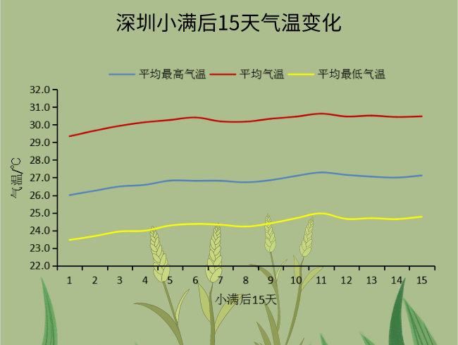 小滿后15天,深圳的平均氣溫為26.8℃,平均最高氣溫為30.2℃,出現(xiàn)33.0℃及以上的炎熱天氣平均有1.5天。盡管小滿時(shí)節(jié)的深圳還處在初夏,但給人的感覺(jué)已經(jīng)是盛夏了。歷史上小滿后15天深圳共出現(xiàn)10天的高溫天氣(最高氣溫≥35℃),其中1963年和2000年曾連續(xù)出現(xiàn)2天的高溫天氣。