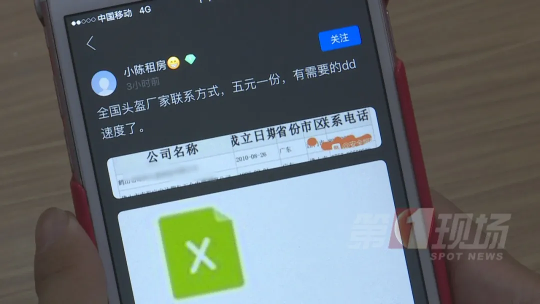 在一個社交平臺上,就有以33元的單價,收購十萬個頭盔的買主。還有的人則是手握訂單,要找生產(chǎn)頭盔的廠商。更有甚者,以頭盔廠商的聯(lián)系方式作為資源,以五元4000個聯(lián)系方式,進行叫賣。