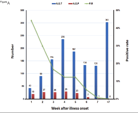 研究發(fā)現(xiàn)此次SARS-CoV-2在感染早期(病程第1周)從腸道排出的陽性率最高(44.19%),而2003年的SARS病毒在腸道的檢出率通常需要在2~3周時才能達到高峰。隨著病程進展,SARS-CoV-2在糞便中病毒核酸的陽性率逐步下降,在病程的4~5周形成一個平臺期。通過對患者的臨床資料分析,在病程的3~5周時,大部分患者臨床癥狀已消失,各項指標達到了出院標準,但仍有12%的患者糞便可以持續(xù)排毒,提示對于康復期患者仍需加強糞便管理,防止糞口傳播。研究發(fā)現(xiàn)在病程第7周時仍然有2例患者糞便核酸陽性,但病程7周以上的患者(共篩檢303例)的糞便病毒核酸未再檢出陽性。