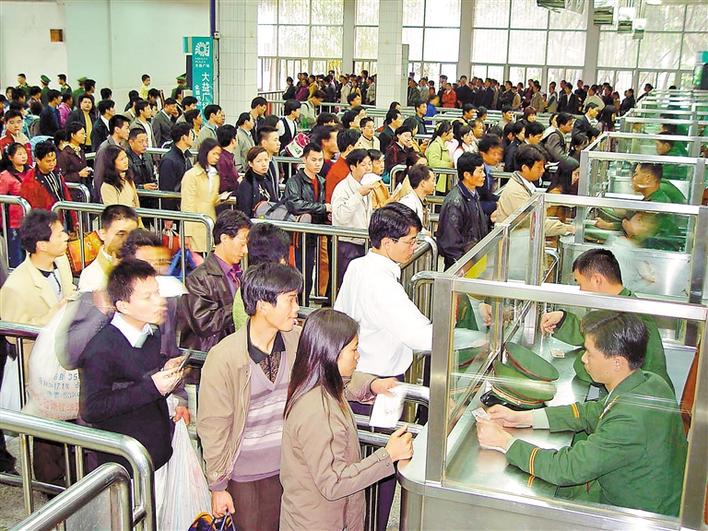 2003年,市民排隊(duì)進(jìn)關(guān)。