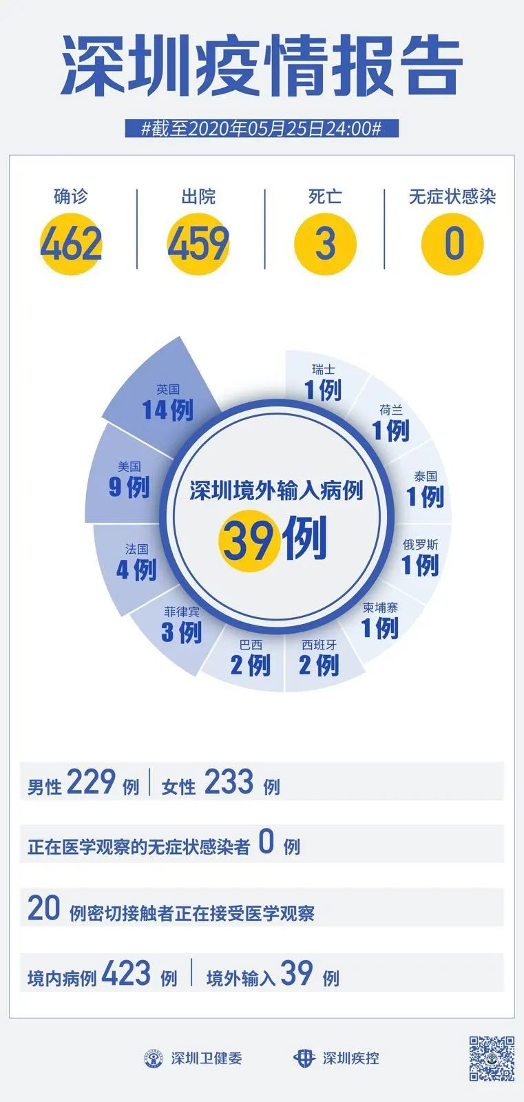 截至5月25日24時(shí),深圳累計(jì)報(bào)告新冠肺炎病例462例。