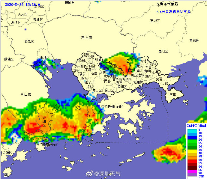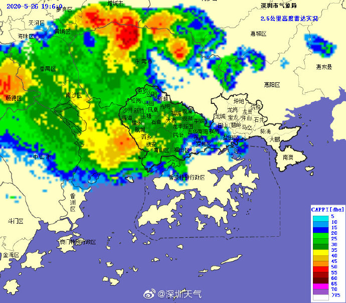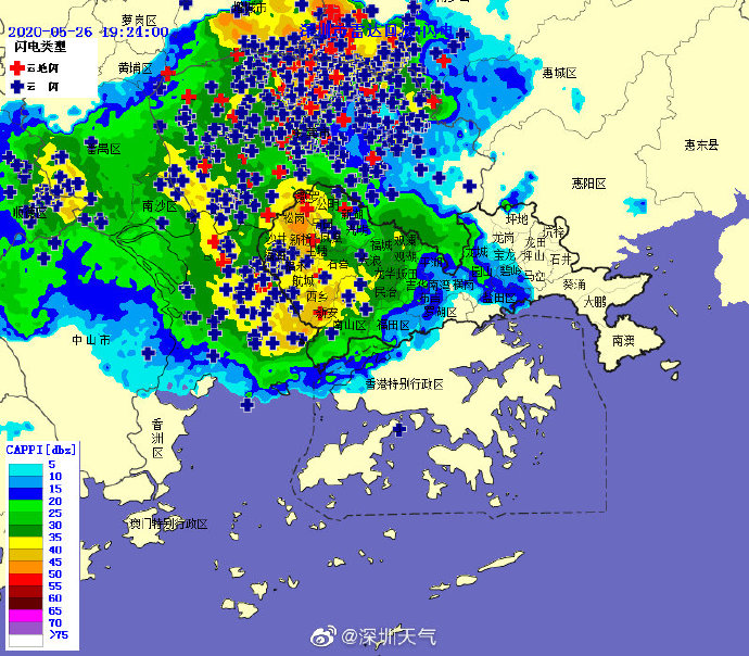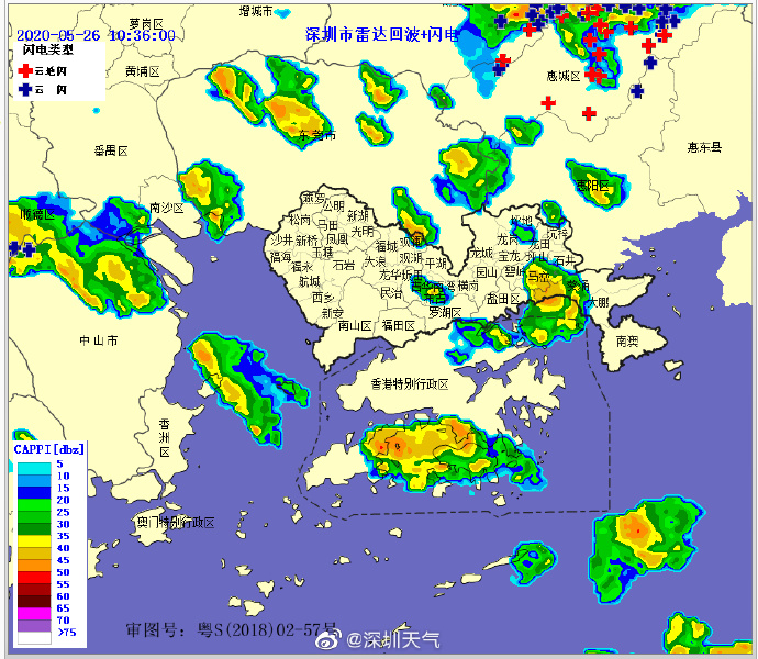 10時08分:【深圳市雷電預(yù)警】深圳市氣象臺于2020年05月26日10時10分在全市發(fā)布雷電預(yù)警,預(yù)計60分鐘內(nèi)全市將受雷電影響,按照防御預(yù)案停止戶外易燃易爆危險作業(yè),并加強?;瘓鏊踩芾?。