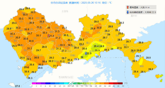 15時43分:【深圳市天氣提示】未來一周陽光陣雨相伴:27-31日多云,可見陽光,間中有(雷)陣雨,天氣日趨悶熱,27日氣溫26-30℃;展望6月1-2日多云,局地有短時陣雨。近期降雨頻繁,請繼續(xù)做好地面塌陷、滑坡等地質(zhì)災(zāi)害的防范。