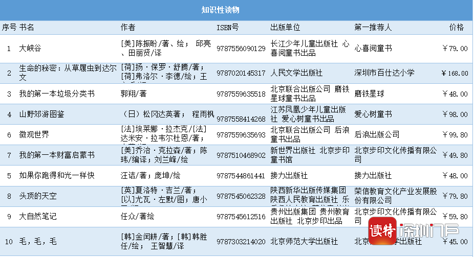 見(jiàn)圳客戶(hù)端·深圳新聞網(wǎng)2020年6月1日訊(記者 馬璇 通訊員 周知)第七屆“我最喜愛(ài)的童書(shū)”閱讀推廣活動(dòng)自4月23日啟幕以來(lái),全國(guó)34家單位強(qiáng)強(qiáng)聯(lián)手,共同打造國(guó)內(nèi)具公信力、影響力的少兒閱讀推廣活動(dòng)。經(jīng)過(guò)專(zhuān)家學(xué)者推選、網(wǎng)絡(luò)投票等環(huán)節(jié),30強(qiáng)圖書(shū)于6月1日火熱出爐。
