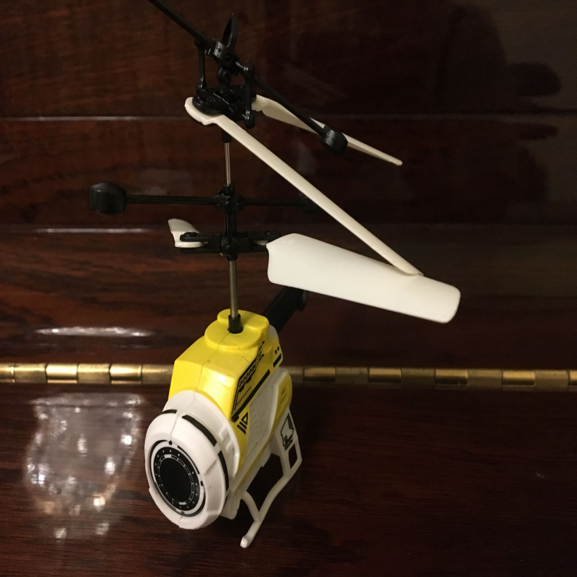 ▲這是我的高科技玩具,感應(yīng)飛行器,它的機殼上有一個體外紅外線裝置,使它一碰到物體就能自動感應(yīng)到障礙避開飛行。