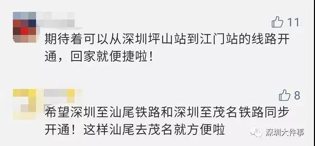 不少網(wǎng)友也紛紛留言,表示了對(duì)深茂鐵路深圳至江門(mén)段的期待。
