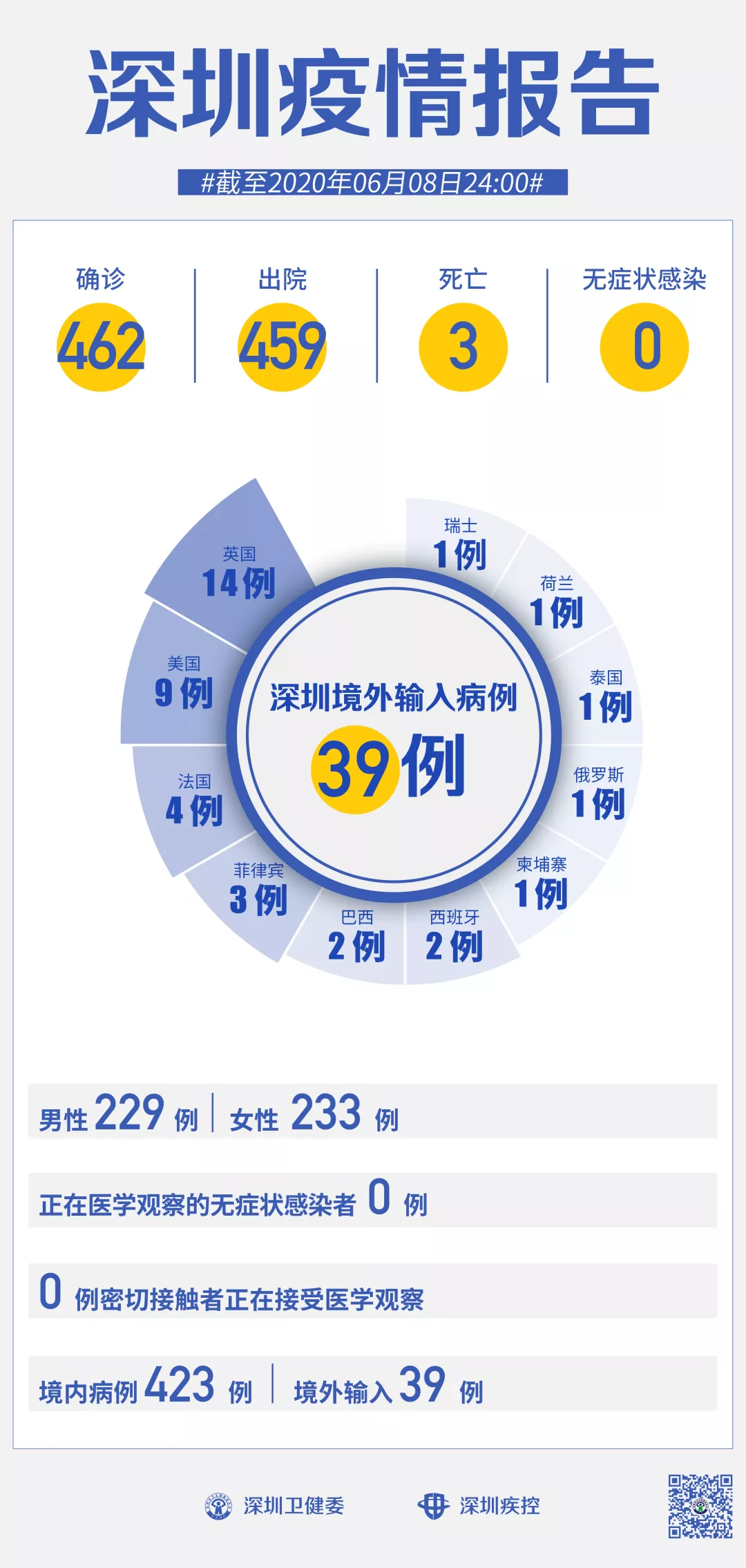 截至6月8日24時(shí),深圳累計(jì)報(bào)告新冠肺炎病例462例。