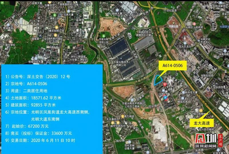 光明A614-0506宗地位于光明區(qū)鳳凰街道龍大高速西南側(cè)、光明大道東南側(cè),土地用途為二類居住用地,起始價(jià)為6.72億元,土地面積為18571.62平方米,建筑面積為9.29萬(wàn)平方米。該宗地建設(shè)住宅類型為出售的人才住房,項(xiàng)目建成后宗地出售的人才住房銷售基準(zhǔn)售價(jià)不高于2.9萬(wàn)元/平方米,最高售價(jià)不高于3.05萬(wàn)元/平方米。
