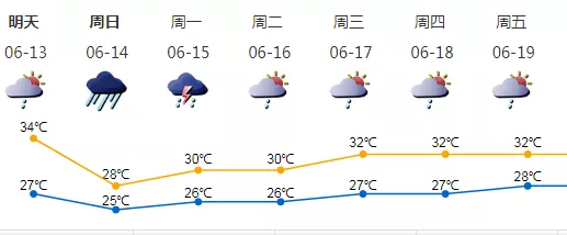 12-13日多云,偶有短時(雷)陣雨,天氣炎熱;13日夜間-14日有一次明顯風雨過程;
