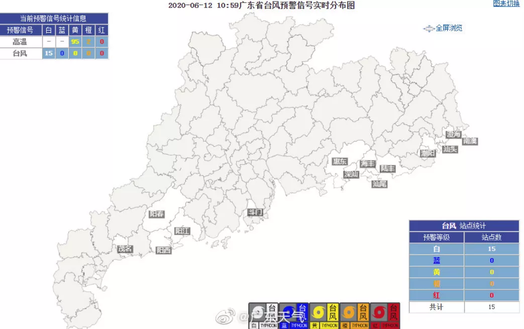 廣東省氣象局6月12日10時(shí)啟動(dòng)重大氣象災(zāi)害(臺(tái)風(fēng))三級應(yīng)急響應(yīng)。目前,廣東沿海陸陸續(xù)續(xù)臺(tái)風(fēng)白色預(yù)警信號都在亮起,深圳在2020年6月12日12時(shí)發(fā)布臺(tái)風(fēng)白色預(yù)警。