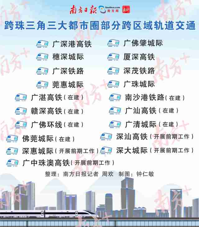 在珠三角,軌道交通也在緊鑼密鼓推進(jìn)。設(shè)計時速350公里的兩條大動脈——連接深圳、東莞、惠州、河源的贛深高鐵,及連接廣州、惠州、汕尾的廣汕高鐵,正加快建設(shè),分別計劃2021年、2022年建成。屆時,這些城市可1小時內(nèi)互通。