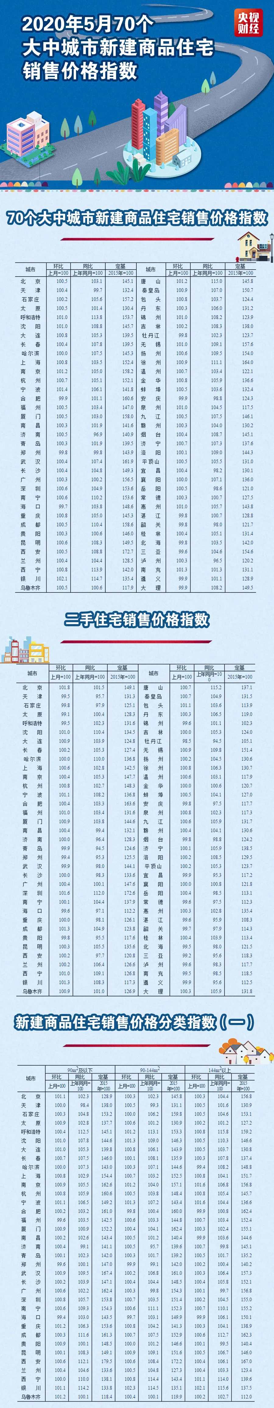 央視財經(jīng)2020年6月15日訊 國家統(tǒng)計局今天發(fā)布的5月份70大中城市新建商品住宅銷售價格顯示:一二三線城市新建商品住宅銷售價格環(huán)比漲幅均略有擴大,二手住宅漲幅與上月相同或微擴。環(huán)比看,銀川漲幅2.1%領跑。