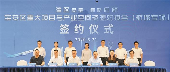 寶安區(qū)重大產(chǎn)業(yè)項(xiàng)目與產(chǎn)業(yè)空間資源對(duì)接會(huì)·航城專場(chǎng)簽約儀式現(xiàn)場(chǎng)。