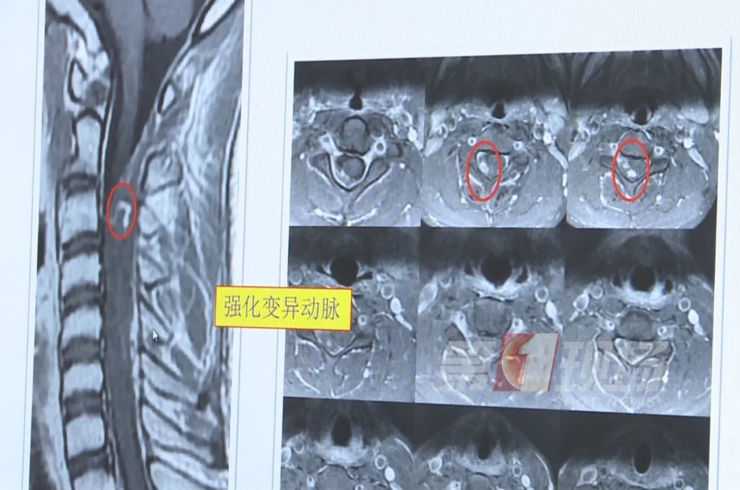 隨后,小威在朋友的幫助下來(lái)到寶安人民醫(yī)院(集團(tuán))第二醫(yī)院,做了脊髓磁共振檢查,結(jié)果比大家想象的嚴(yán)重許多,小威的頸椎血管爆了……