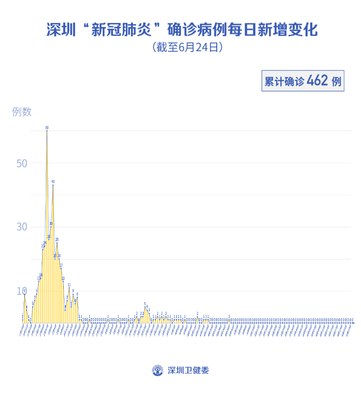截至6月24日24時,深圳累計報告新冠肺炎病例462例。