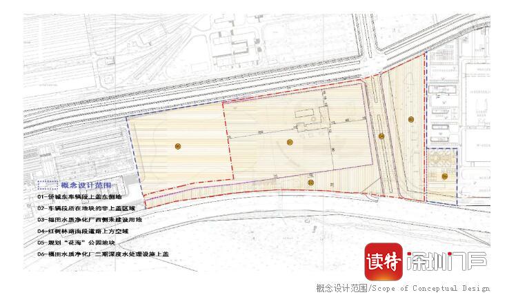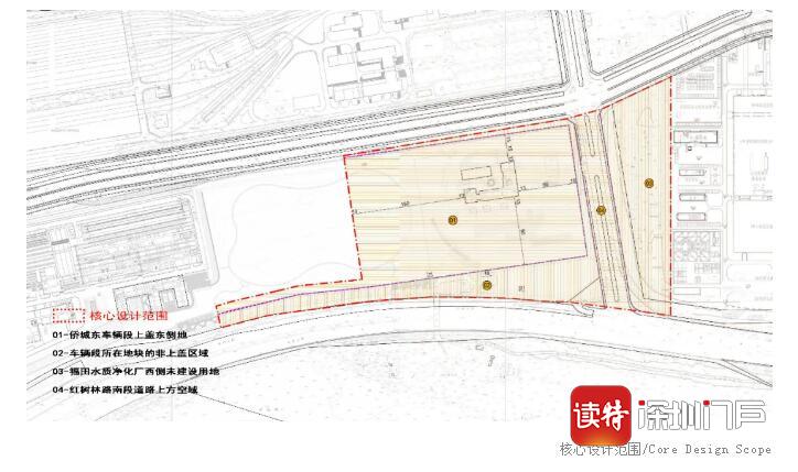 該項目的規(guī)劃范圍總面積約13萬㎡,總建筑面積約3.95萬㎡(其中博物館主體建筑3萬㎡,配套停車場、園林及小型商業(yè)建筑0.95萬㎡),配套景觀面積約9.2萬㎡。博物館主體建筑的建設場地位于僑城東車輛段上蓋東側(含東南角的未利用地),上蓋以下的物業(yè)已經建成,博物館主體建筑的設計范圍不涉及上蓋以下空間。