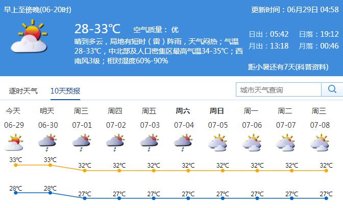 天氣悶熱,局地有短時(shí)陣雨 全市高溫黃色預(yù)警信號(hào)持續(xù)生效中