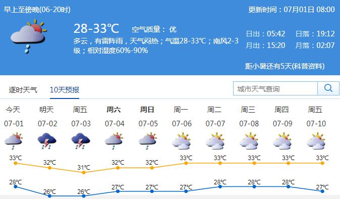 見圳客戶端·深圳新聞網(wǎng)2020年7月1日訊 我市今日晴天間多云,局地有短時(雷)陣雨;氣溫28-33℃,中北部及人口密集區(qū)最高氣溫可達(dá)35℃以上;偏南風(fēng)2-3級;相對濕度60%-90%。
