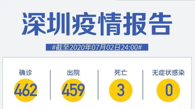 截至7月1日24時,深圳累計報告新冠肺炎病例462例。