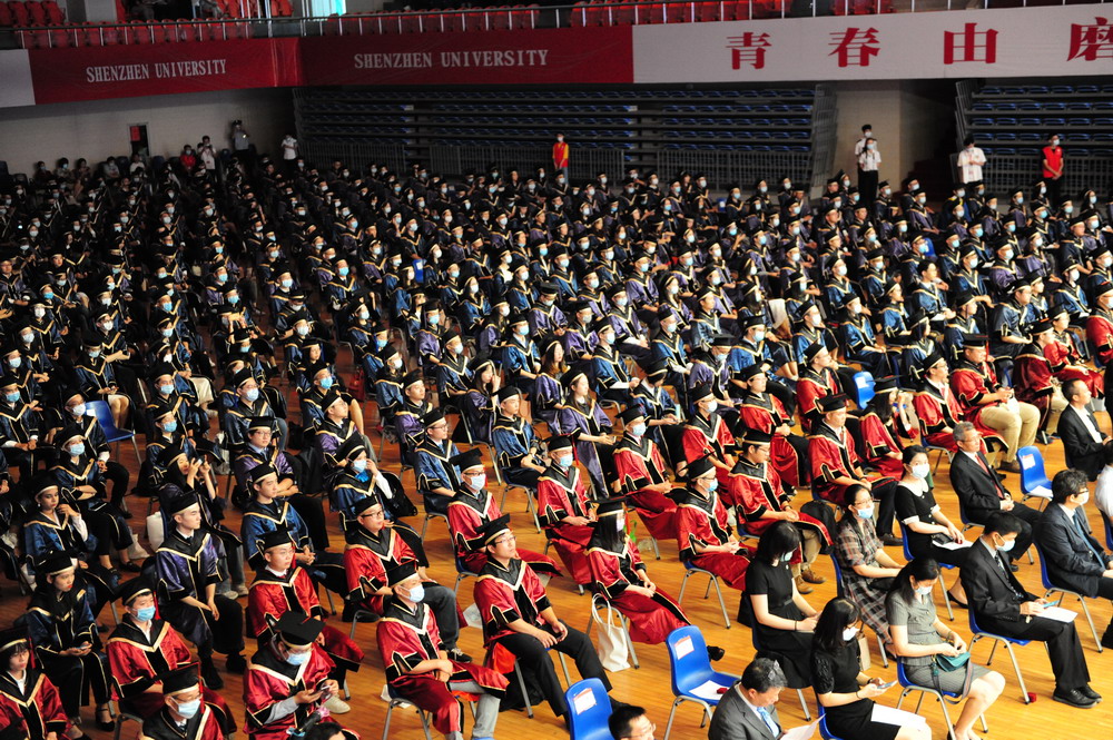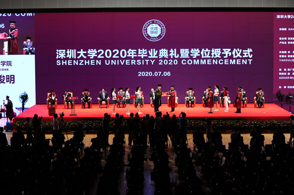 上午9時(shí),畢業(yè)典禮在莊嚴(yán)的國(guó)歌聲中拉開了帷幕。據(jù)介紹,2020年深圳大學(xué)畢業(yè)研究生數(shù)量創(chuàng)歷史新高,達(dá)到2334名,包括44位博士學(xué)位獲得者,2290位碩士學(xué)位獲得者。其中,郭奎奎等20人獲得廣東省優(yōu)秀學(xué)生稱號(hào),李豪道等140人榮獲國(guó)家獎(jiǎng)學(xué)金,曾吉申等64人榮獲鵬城獎(jiǎng)學(xué)金、騰訊創(chuàng)新獎(jiǎng)學(xué)金。