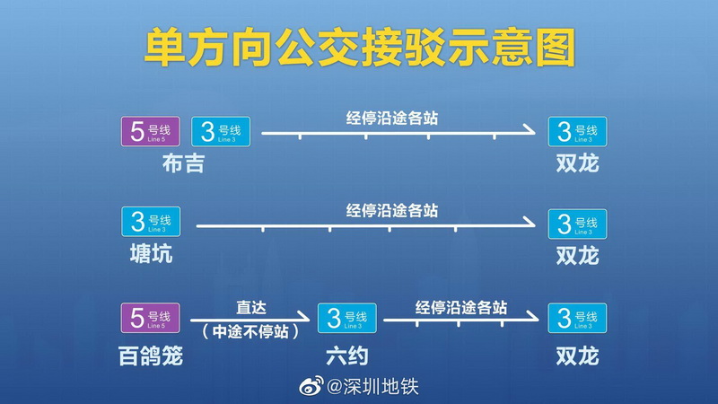 據(jù)介紹,提前結束運營后,深圳地鐵將開設布吉雙龍→塘坑→雙龍、百鴿籠→六約→雙龍共3條單方向公交接駁線路。在此期間出行的乘客,請留意車站末班車時間,做好出行規(guī)劃,合理安排行程。如需了解詳情請咨詢車站工作人員,或撥打深圳地鐵客服熱0755-88960600。
