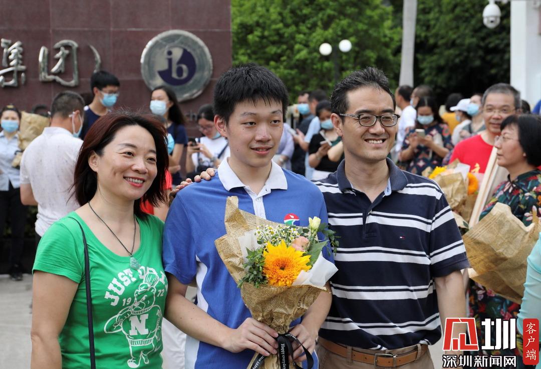 一家三口于深圳高級中學(xué)考點外進(jìn)行合影。