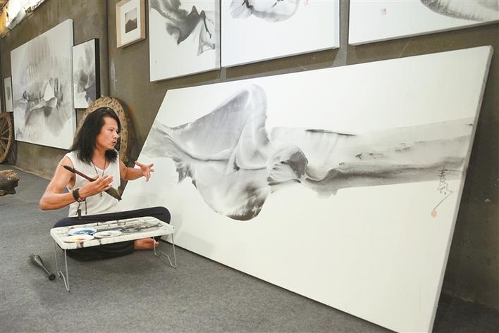 鄭泰均有個心愿,希望能在深圳找到一條河流,放一只大型竹筏,將宣紙鋪滿,在自由漂流中作畫。他曾在寶安至美術館開個展的時候留意過旁邊的一條河流,當時那條河還散發(fā)著難聞的氣味,但是經(jīng)過近些年深圳在“水治理”方面的大力投入,去年他再去美術館時,那條河河水已經(jīng)變得清澈,臭味難尋,正是他理想中的那條河流。他想,很快,這個心愿就能實現(xiàn)了。