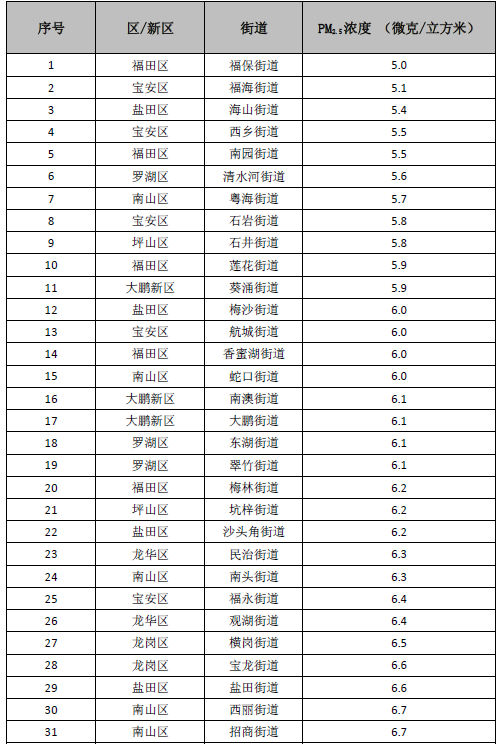 見圳客戶端·深圳新聞網2020年7月9日訊(見圳客戶端、深圳新聞網記者 葉梅 實習記者 徐樂釗)記者從深圳市生態(tài)環(huán)境局獲悉,2020年6月,全市74個街道PM2.5濃度在5.0-10.2微克/立方米之間,均值為7.0微克/立方米。
