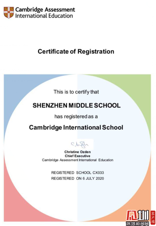 見圳客戶端·深圳新聞網(wǎng)2020年7月9日訊(見圳客戶端·深圳新聞網(wǎng)記者 梁榆其)7月6日,劍橋大學國際考評部英國總部發(fā)來注冊認證證書,正式宣布深圳中學(以下簡稱“深中”)成為具有開辦官方IGCSE和A-LEVEL課程資質(zhì)的劍橋?qū)W校。