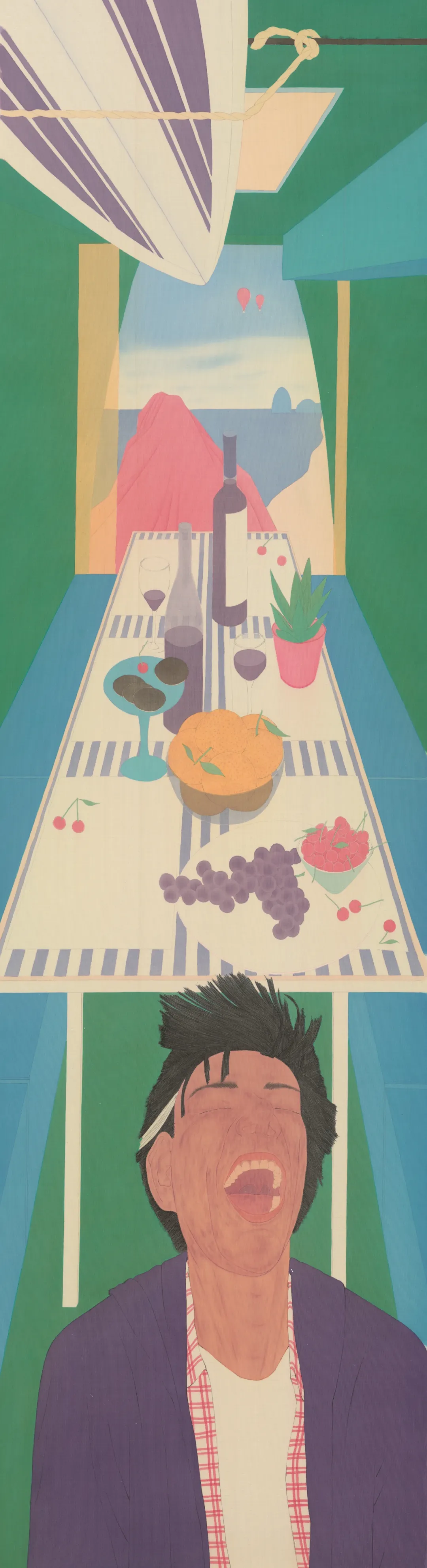 苗瀚文《浮夸背后系列-24》,紙本設(shè)色,54×112cm,2017-2019年