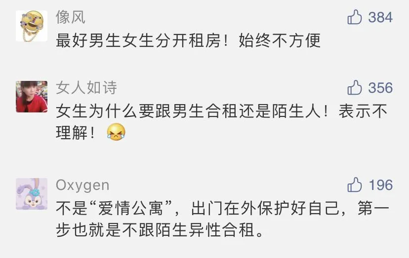 說(shuō)到合租,請(qǐng)一定要謹(jǐn)慎選擇室友,尤其是男女合租,安全問(wèn)題不容忽視,凡事多留個(gè)心眼,一定要保護(hù)好自己。