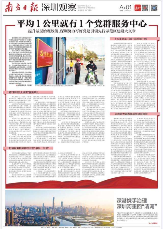 深圳市委組織部負(fù)責(zé)人在接受南方日報記者采訪時表示,深圳將始終圍繞中心、服務(wù)大局,持續(xù)深化城市基層黨建“標(biāo)準(zhǔn)+”模式,進(jìn)一步提升基層黨組織的組織力和基層治理效能,走出符合超大城市特點和規(guī)律的基層黨建和基層治理新路徑。